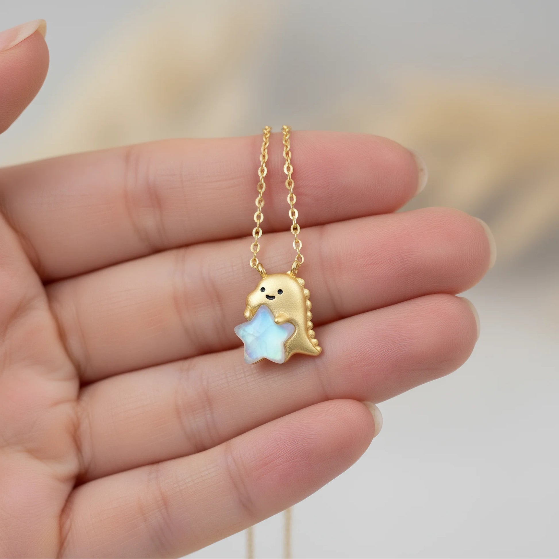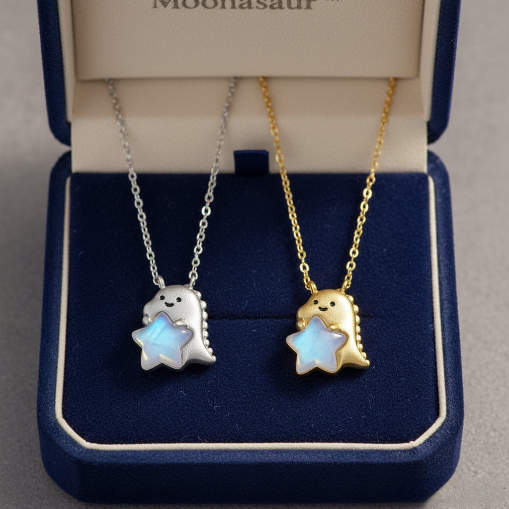 Un diseño creado para enamorar a todas las edades: desde niñas que sueñan entre las estrellas hasta mujeres que desean llevar un delicado amuleto de luz y ternura 💖. Porque Moonasaur es más que una joya – es un recordatorio de que siempre hay que alcanzar las estrellas ✨.
