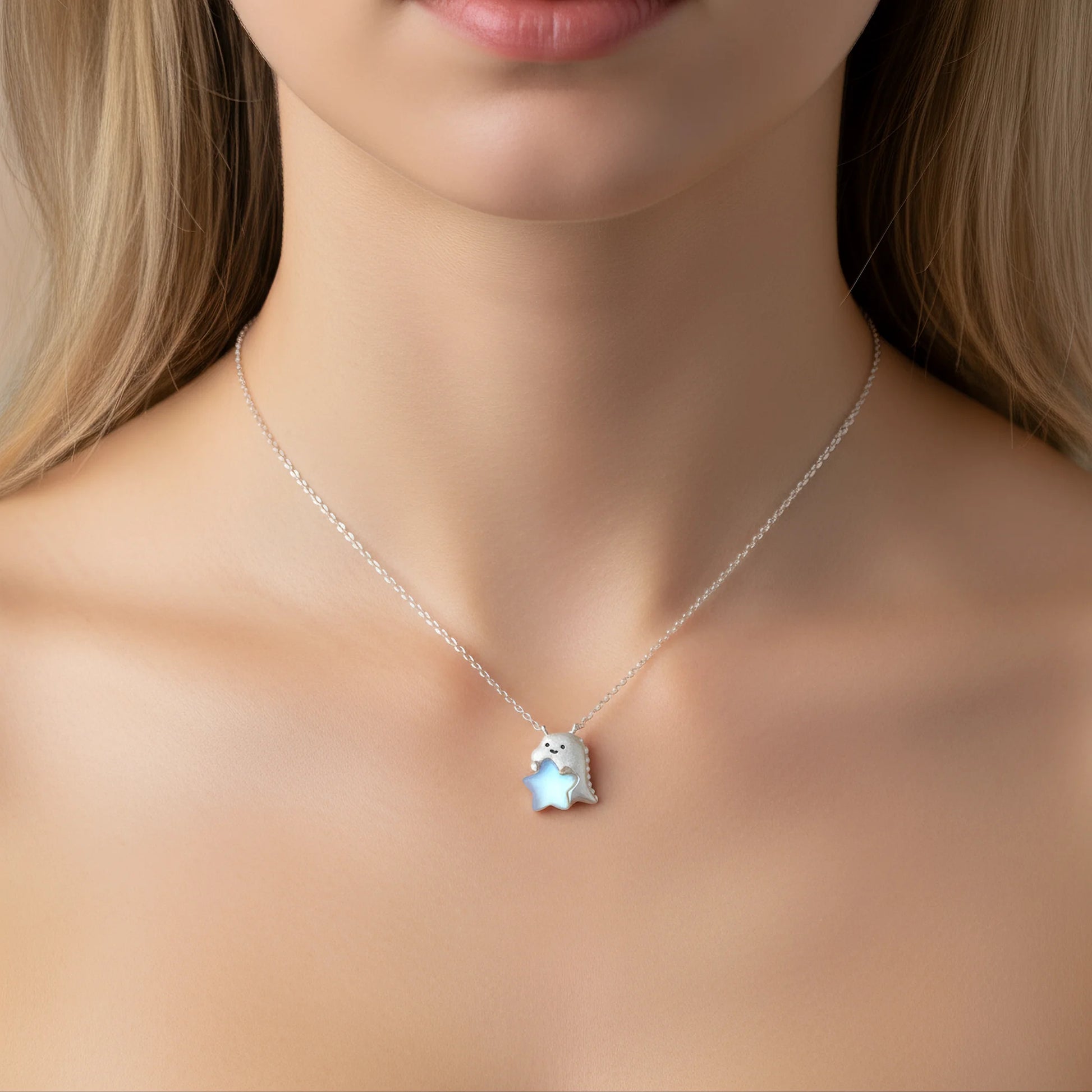 ✨ Conoce el Collar Moonasaur™ – un pequeño dinosaurio con un gran sueño brillante.